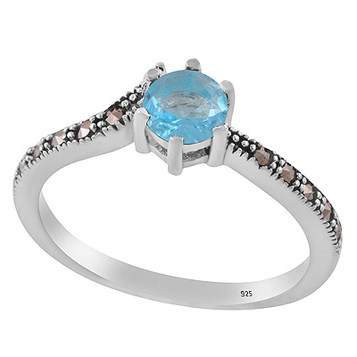 Stunning Oxidised Work Around Marcasite,Cubic Zirconia Round Shape 925 Sterling Solid Silver Ring