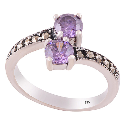 Alluring Oxidised Work Around Marcasite,Cubic Zirconia Round Shape 925 Sterling Solid Silver Ring