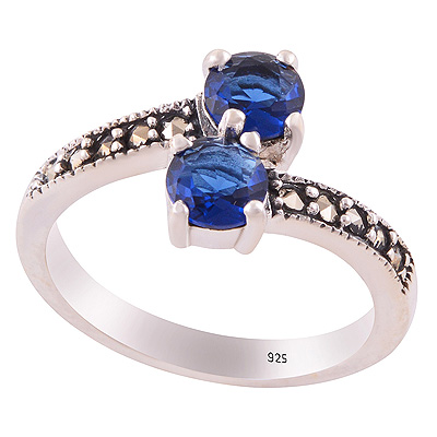 Alluring Oxidised Work Around Marcasite,Red Corundum,Green Onyx Round Shape 925 Sterling Solid Silver Ring