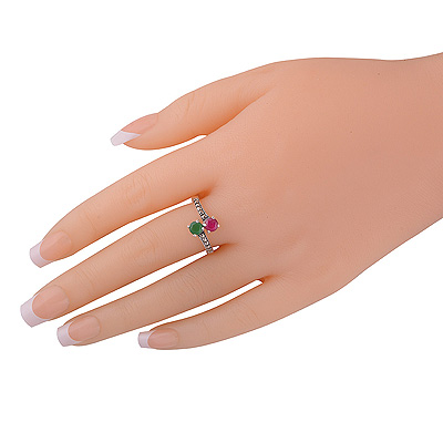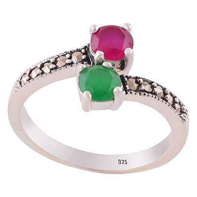 Alluring Oxidised Work Around Marcasite,Red Corundum,Green Onyx Round Shape 925 Sterling Solid Silver Ring