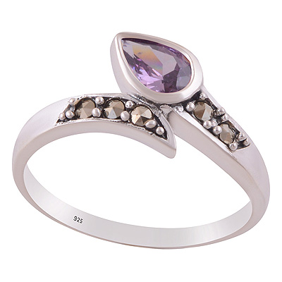 Beautiful Oxdised Patter Around Marcasite,Cubic Zirconia Pear,Round Shape 925 Sterling Solid Silver Ring