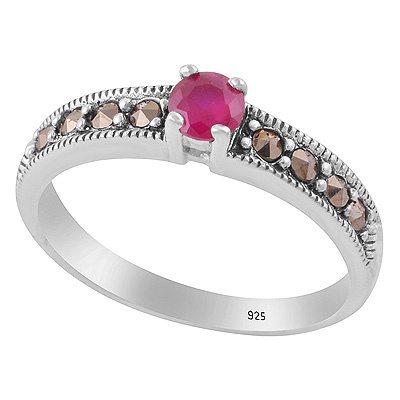 Gorgeous Gemstone Studded Around Marcasite,Cubic Zirconia Round Shape 925 Sterling Solid Silver Ring