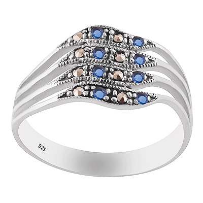 Alluring Layered Studded Gemstones Marcasite,Cubic Zirconia Round Shape 925 Sterling Solid Silver Ring