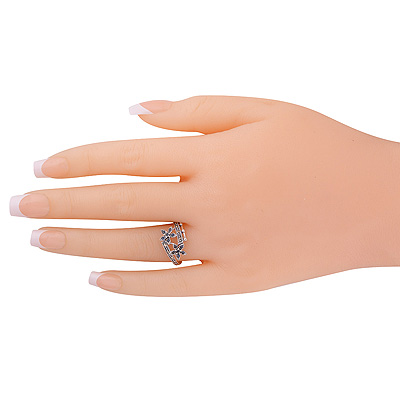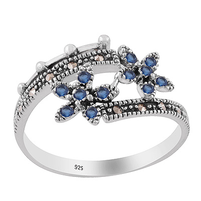 Beautiful Flower Studded w/ Gemstones Marcasite,Red Corundum,Green Onyx Round Shape 925 Sterling Solid Silver Ring