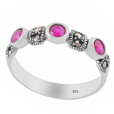 Stunning Multiple Studded Gemstones Marcasite,Cubic Zirconia Round Shape 925 Sterling Solid Silver Ring