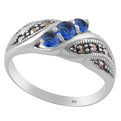 Beautiful Design Studded Gemstone Marcasite,Cubic Zirconia Round Shape 925 Sterling Solid Silver Ring