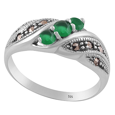 Beautiful Design Studded Gemstone Marcasite,Red Corundum,Green Onyx,Cubic Zirconia Round Shape 925 Sterling Solid Silver Ring