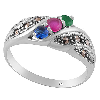 Beautiful Design Studded Gemstone Marcasite,Red Corundum,Green Onyx,Cubic Zirconia Round Shape 925 Sterling Solid Silver Ring
