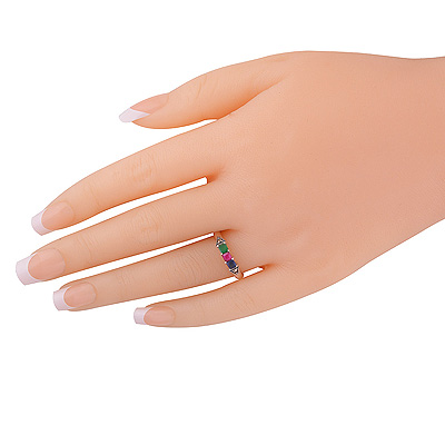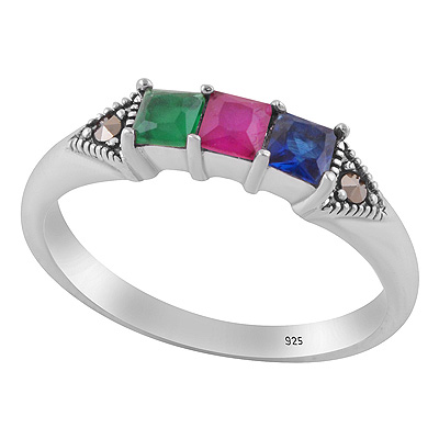 Stunning Multiple Gemstone Studded Marcasite,Red Corundum,Green Onyx,Cubic Zirconia Square,Round Shape 925 Sterling Solid Silver Ring