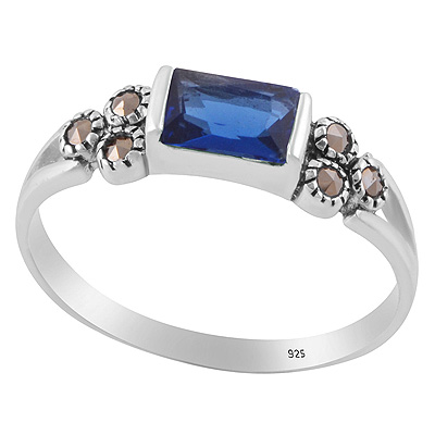 Beautiful Gemstone Studded Around Marcasite,Red Corundum Rectangle,Round Shape 925 Sterling Solid Silver Ring
