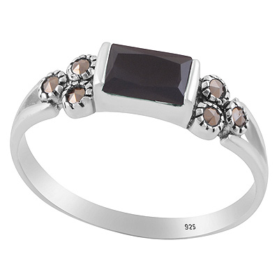 Beautiful Gemstone Studded Around Marcasite,Cubic Zirconia Rectangle,Round Shape 925 Sterling Solid Silver Ring