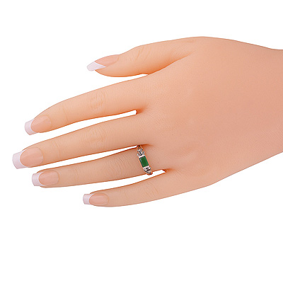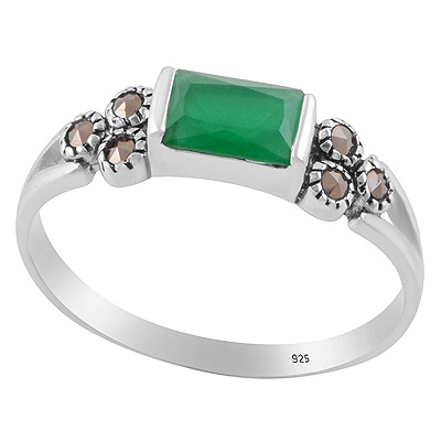 Beautiful Gemstone Studded Around Marcasite,Green Onyx Rectangle,Round Shape 925 Sterling Solid Silver Ring