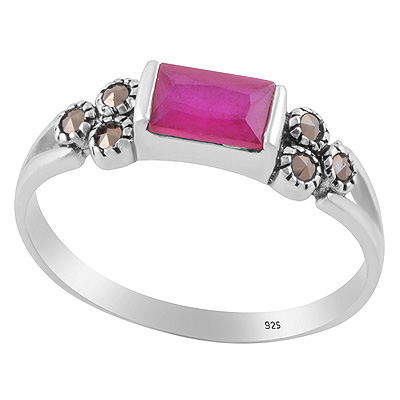 Beautiful Gemstone Studded Around Marcasite,Cubic Zirconia Rectangle,Round Shape 925 Sterling Solid Silver Ring