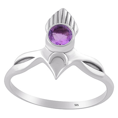 Alluring Pattern Handcrafted Around Amethyst Round Shape 925 Sterling Solid Silver Ring