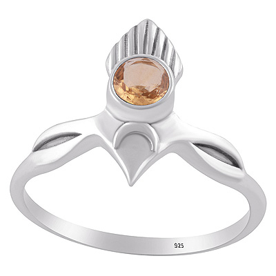 Alluring Pattern Handcrafted Around Citrine Round Shape 925 Sterling Solid Silver Ring