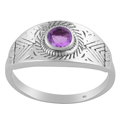 Gorgeous Texture Patterns Around Amethyst Round Shape 925 Sterling Solid Silver Ring