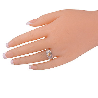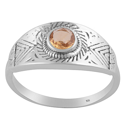 Gorgeous Texture Patterns Around Citrine Round Shape 925 Sterling Solid Silver Ring