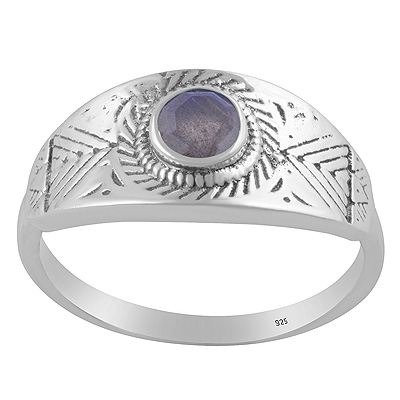 Gorgeous Texture Patterns Around Labradorite Round Shape 925 Sterling Solid Silver Ring