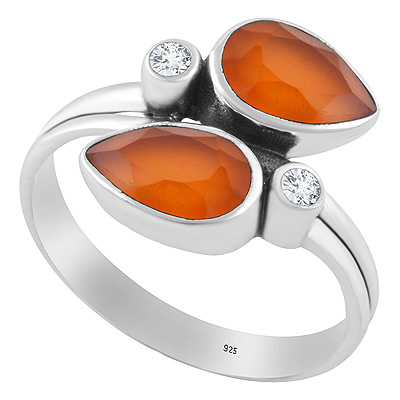 Alluring Multiple Gemstones Carnelian,White Cubic Zirconia Pear,Round Shape 925 Sterling Solid Silver Ring