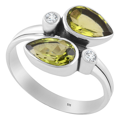 Alluring Multiple Gemstones Peridot,White Cubic Zirconia Pear,Round Shape 925 Sterling Solid Silver Ring