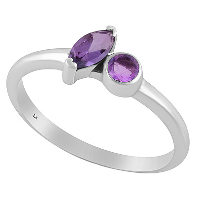 Stunning Multicolour Gemstones Studded Amethyst Marquise,Round Shape 925 Sterling Solid Silver Ring