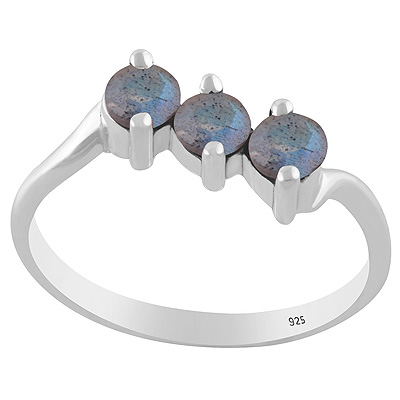 Gorgeous Three Gemstone Labradorite Round Shape 925 Sterling Solid Silver Ring