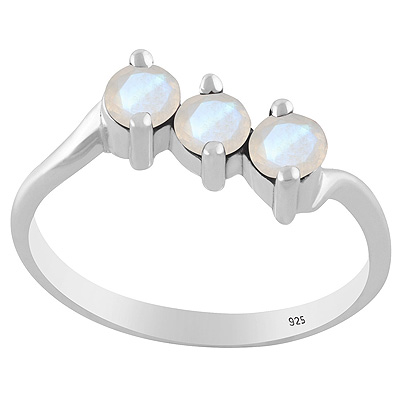 Gorgeous Three Gemstone Rainbow Moonstone Round Shape 925 Sterling Solid Silver Ring