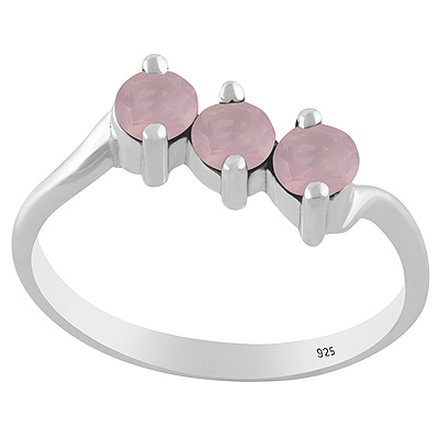 Gorgeous Three Gemstone Rose Quartz Round Shape 925 Sterling Solid Silver Ring