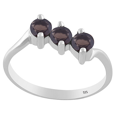 Gorgeous Three Gemstone Smoky Topaz Round Shape 925 Sterling Solid Silver Ring