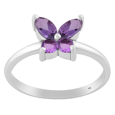 Alluring Butterfly Made of Gemstones Amethyst Marquise,Round Shape 925 Sterling Solid Silver Ring