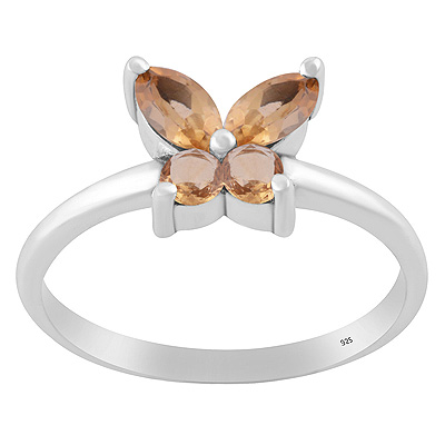Alluring Butterfly Made of Gemstones Citrine Marquise,Round Shape 925 Sterling Solid Silver Ring