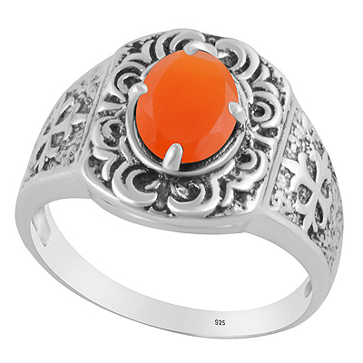Gorgeous Texture Patterns Around Carnelian Oval Shape 925 Sterling Solid Silver Ring