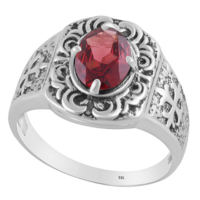 Gorgeous Texture Patterns Around Garnet Oval Shape 925 Sterling Solid Silver Ring