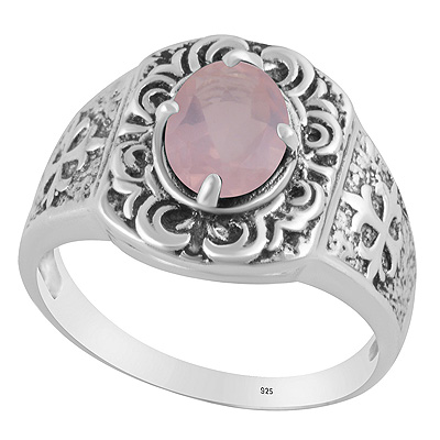 Gorgeous Texture Patterns Around Rose Quartz Oval Shape 925 Sterling Solid Silver Ring