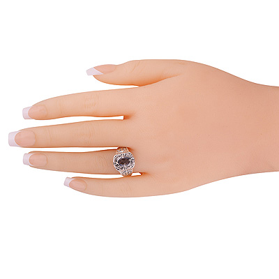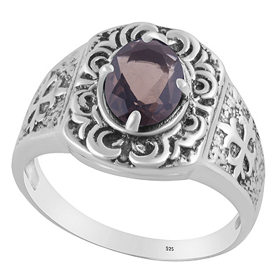 Gorgeous Texture Patterns Around Smoky Topaz Oval Shape 925 Sterling Solid Silver Ring