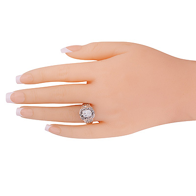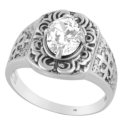 Gorgeous Texture Patterns Around White Cubic Zirconia Oval Shape 925 Sterling Solid Silver Ring