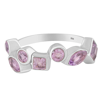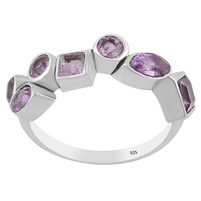 Gorgeous Multiple Shaped Gemstone Around Amethyst 925 Sterling Solid Silver Ring