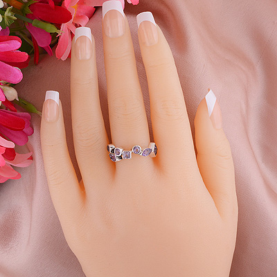 Gorgeous Multiple Shaped Gemstone Around White Cubic Zirconia 925 Sterling Solid Silver Ring