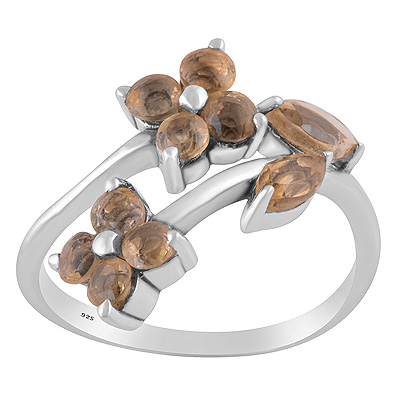 Stunning Flowers Out Of Gemstones Smoky Topaz Round,Marquise Shape 925 Sterling Solid Silver Ring