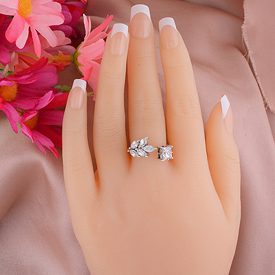 Alluring Design Made Out Of Gemstones White Cubic Zirconia Square,Marquise Shape 925 Sterling Solid Silver Ring