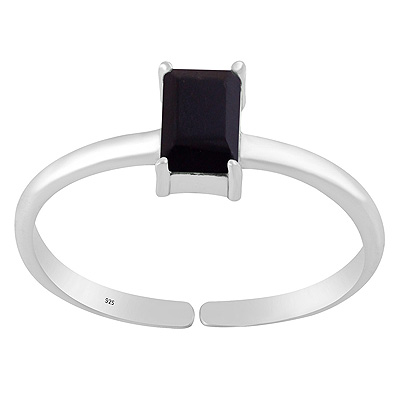 Beautiful Prong Setting Around Black Onyx Rectangle Shape 925 Sterling Solid Silver Ring