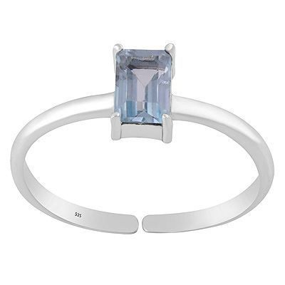 Beautiful Prong Setting Around White Cubic Zirconia Rectangle Shape 925 Sterling Solid Silver Ring