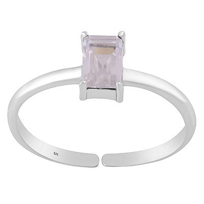 Beautiful Prong Setting Around White Cubic Zirconia Rectangle Shape 925 Sterling Solid Silver Ring