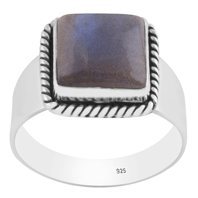 Stunning Twisted Wire Work Around Labradorite Square Shape 925 Sterling Solid Silver Ring
