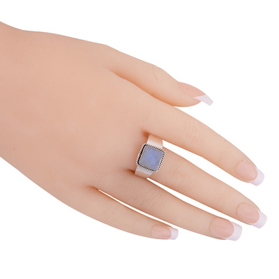Stunning Twisted Wire Work Around Turquoise Square Shape 925 Sterling Solid Silver Ring