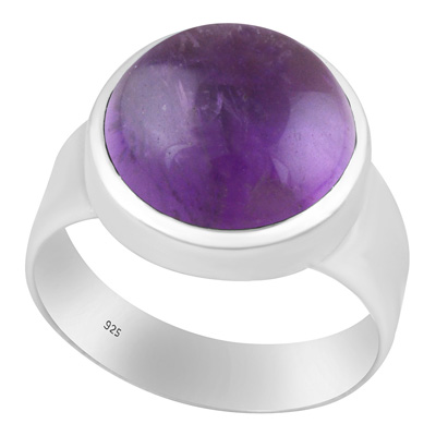 Men's Alluring Amethyst Round Shape 925 Sterling Solid Silver Ring