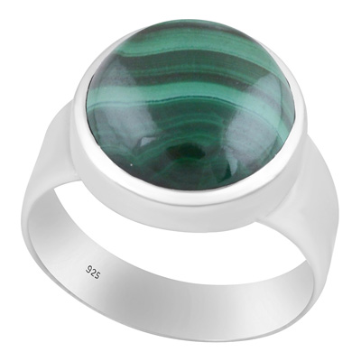Men's Alluring Malachite Round Shape 925 Sterling Solid Silver Ring