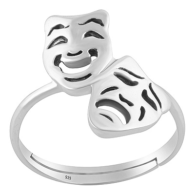 Theatre Masks Laughing and Sad Plain 925 Sterling Solid Silver Ring